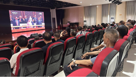 仁怀市老年大学组织师生集中观看纪念中国人民抗日战争暨世界反法西斯战争胜利80周年阅兵9月3日上午9时,纪念中国人民抗日战争暨世界反法西斯战争胜利80周年大会在北京天安门广场隆重举行,仁怀市老年大学组织在校学员及教职员工在多功能厅集中观看直播,共同见证这一凝聚民族精神、彰显国家力量的伟大时刻。在这场跨越历史与时代的庄严盛典中,银发学子们以赤子之心铭记峥嵘岁月,以热泪与掌声礼赞和平荣光。